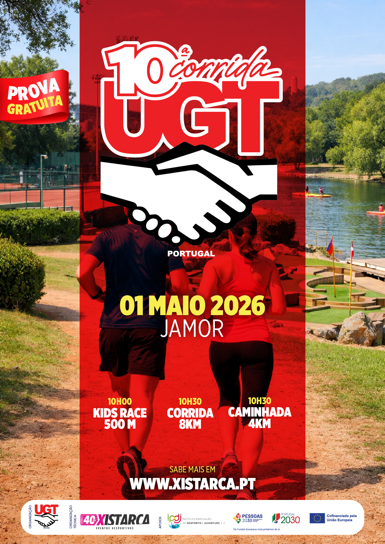 A prova é completamente Grátis, não existindo qualquer taxa de inscrição. As inscrições deverão ser feitas para o seguinte link: https://xistarca.pt/eventos/corrida-ugt-2026 Esta corrida é de âmbito popular e aberta a todos os participantes, mas em comum tem a marca da UGT, com a solidariedade e união de todos os que partilham o gosto pela corrida e partilham modelos de prática desportiva saudável. Após a corrida aceite o nosso convite e festeje com a ugt o 1º de maio! Teremos insufláveis para crianças , aulas de crossift, intervenções sindicais e concerto do Quim Barreiros! |