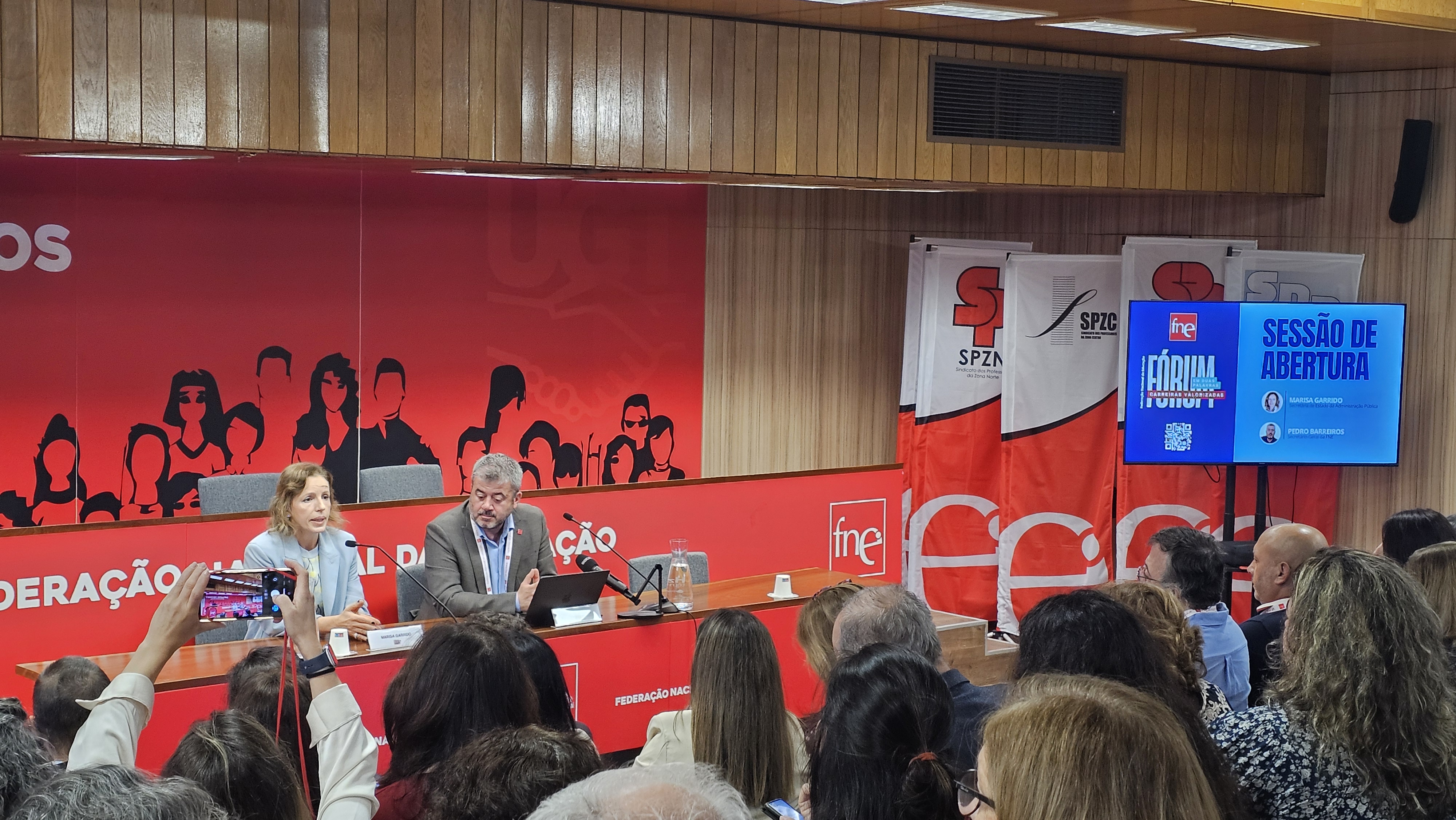 “A participação neste FÓRUM da Secretária de Estado da Administração Pública (SEAP), Marisa Garrido, é um sinal de reconhecimento do trabalho e empenho sindical da FNE”, realçou Pedro Barreiros, enquanto visava o grande objetivo da federação: carreiras valorizadas dos Docentes e Trabalhadores de Apoio Educativo (TAE) para garantir um melhor futuro das nossas escolas.